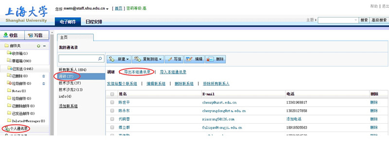 点击个人通讯录,选择要导出的通讯组,然后点击导出本组通讯录。选择导出文件名及保存的目录。