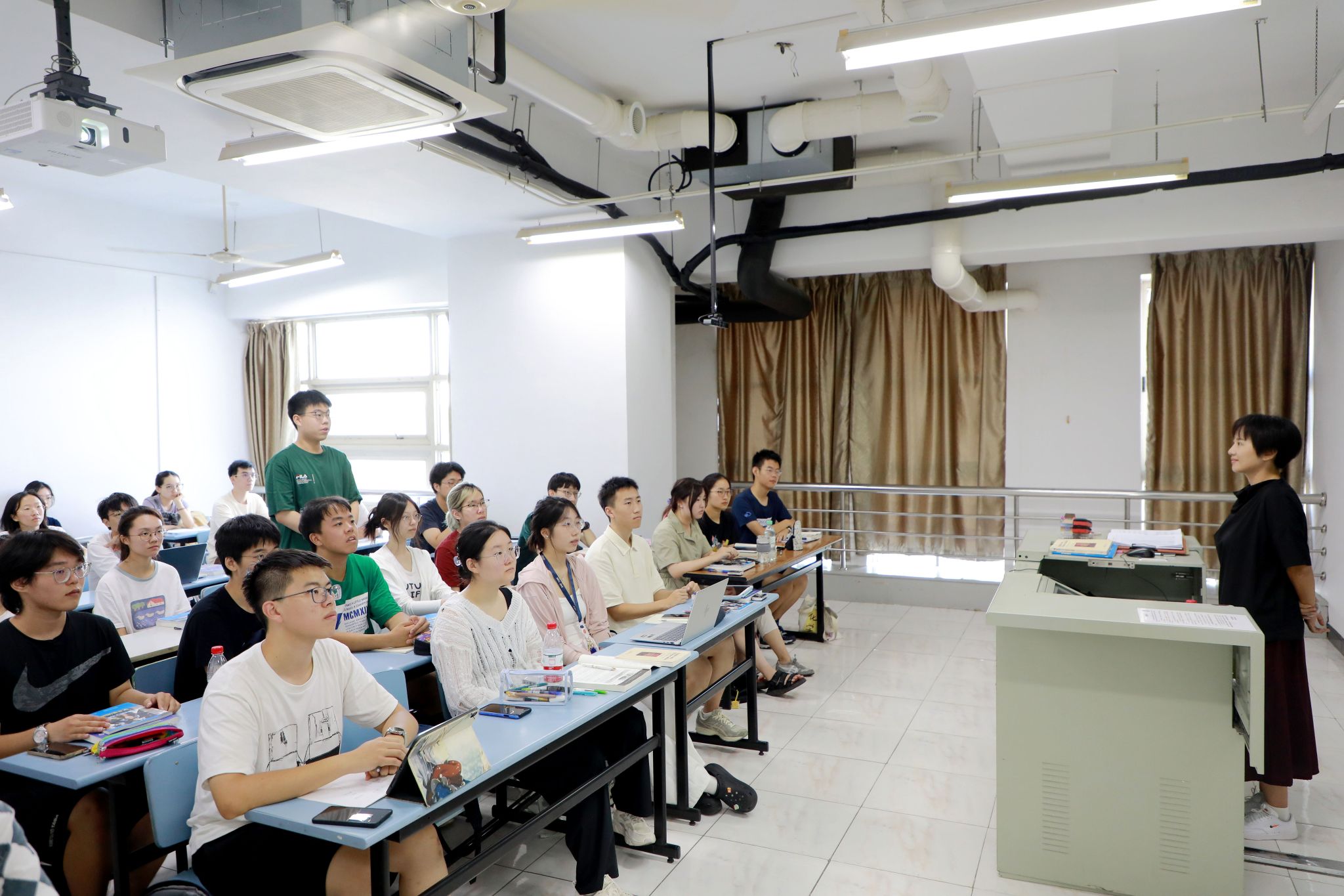 下午16:00至晚间20:00,张建华副校长一行依次对嘉定、宝山、延长校区开展听课、巡课,先后听课25门次。新学期各项教学工作准备充分,师生精神状态饱满,教学运行平稳有序。张建华副校长进入部分课堂听讲,并在课后与师生交流,了解教师的授课内容与方法,倾听研究生的学习感受与心得。她鼓励研究生要努力学习,夯实基本功,希望任课教师开拓教学视野,对标国内外著名高校,优化研究生教育教学能力。